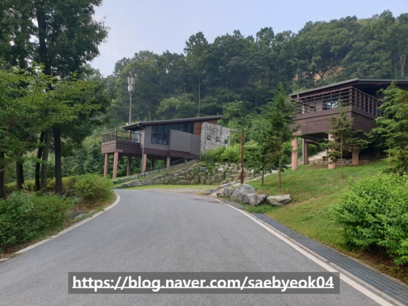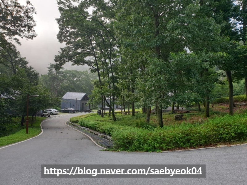 공주산림휴양마을 관리사업소에 들러 체온 측정하고 입실 안내를 받고 올라갔습니다.