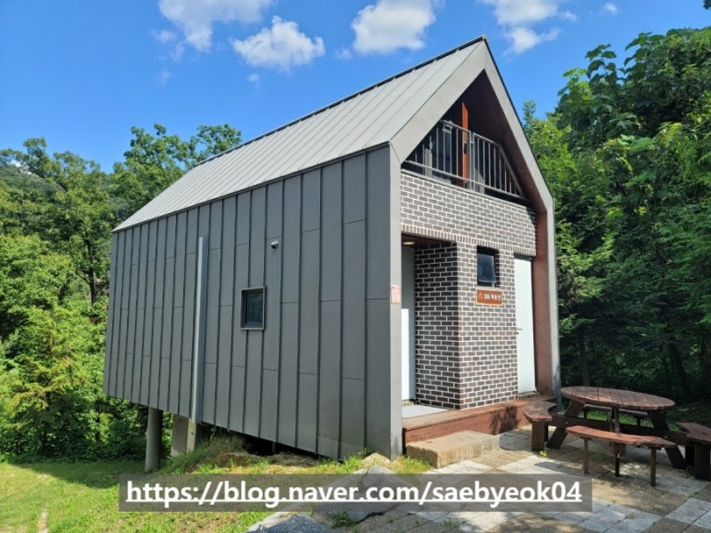 숙박시설은 숲속의 집과 휴양관이 있는데 이곳이 저희가 사용할 숲속의 집입니다.