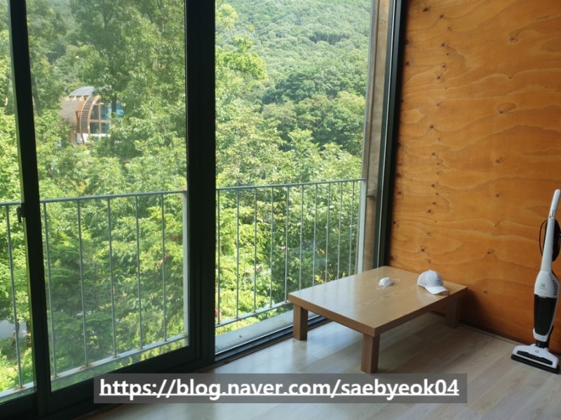 대신 넓은 발코니는 탁 트인 숲속의 전경을 보기엔 더할 나위 없이 좋았습니다.