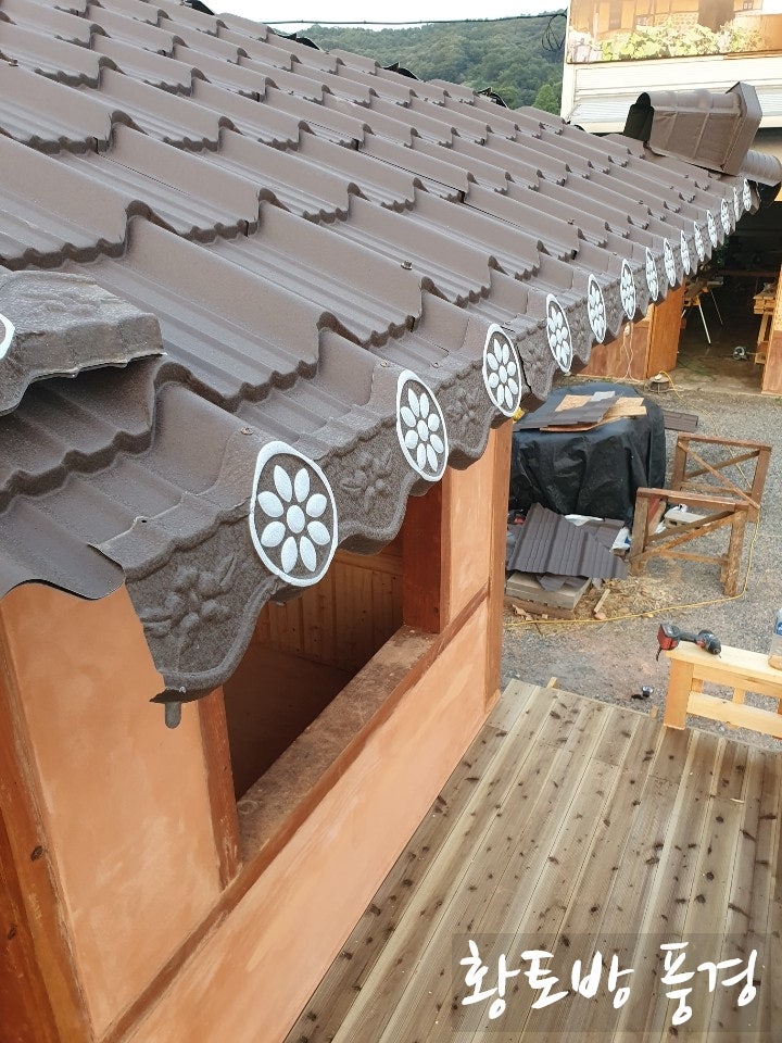 고급스럽고 무난한 밤색 기와가 황토방의 매력을 더해 줍니다.