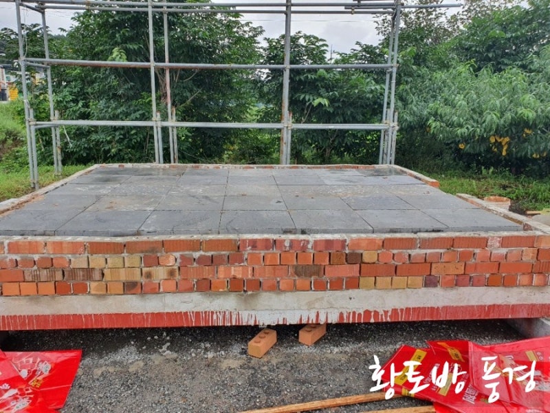 구들장 무게가 엄청 무겁습니다. 낑낑대며 다 얹고 나니 허리가 끊어지는 것 같습니다. ㅎㅎ