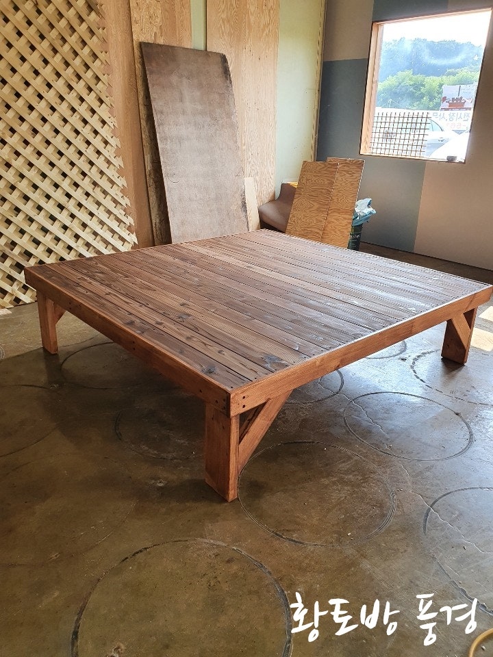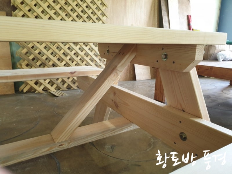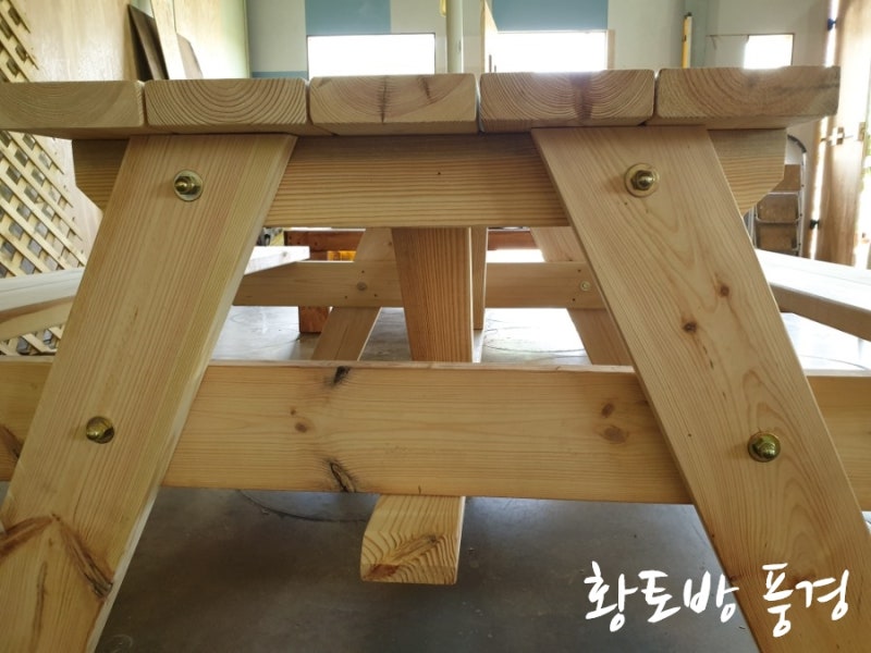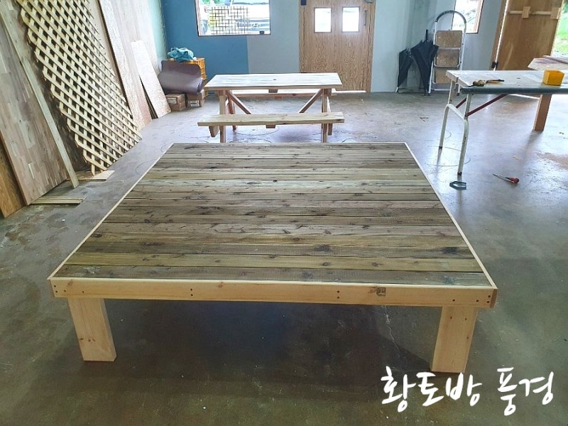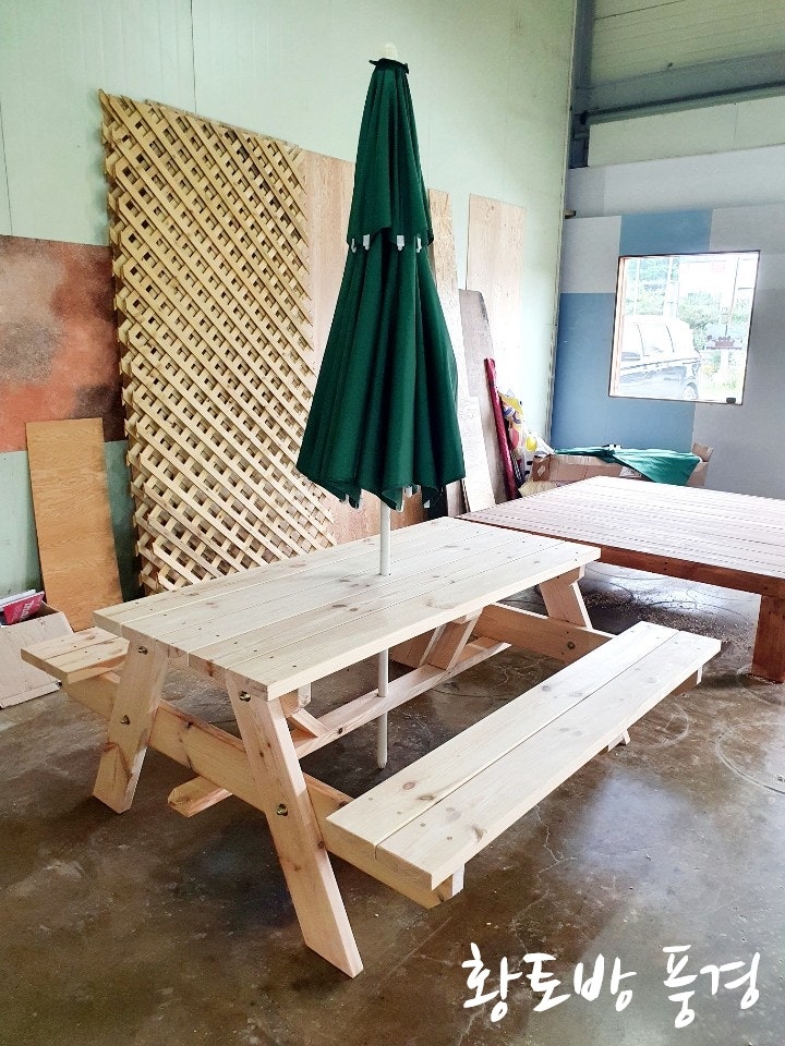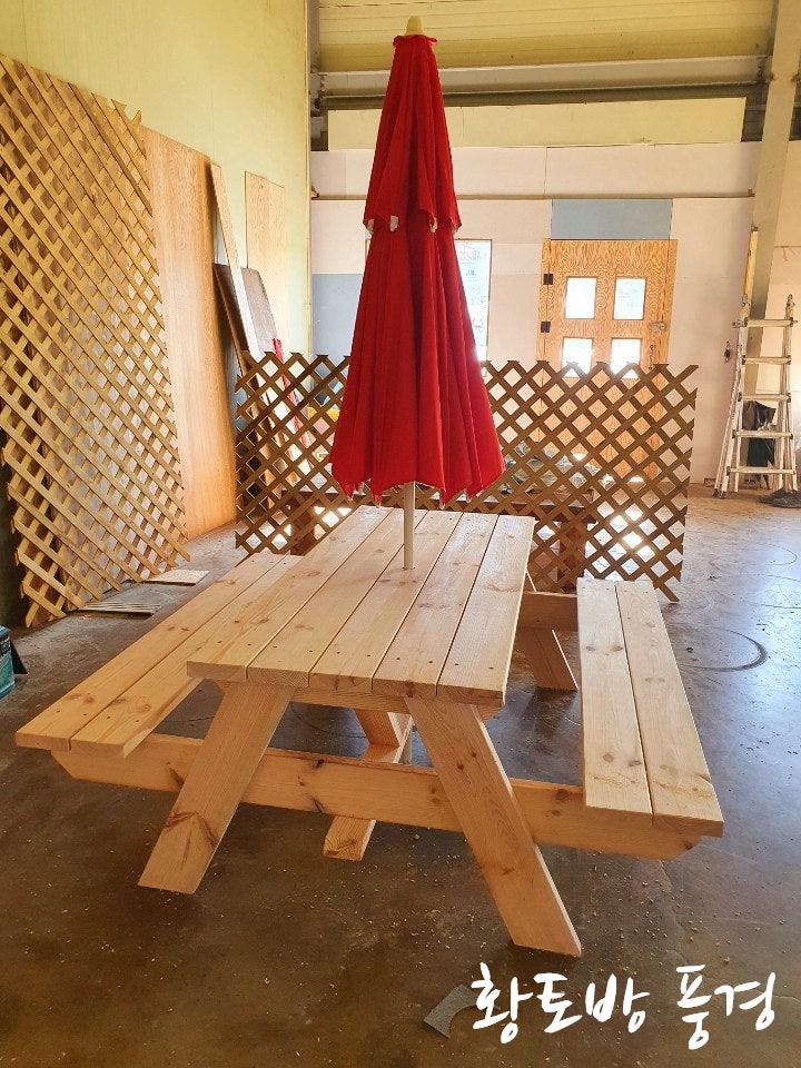 오늘은 고객님께서 주문하신 파라솔 테이블과 평상을 제작했습니다.