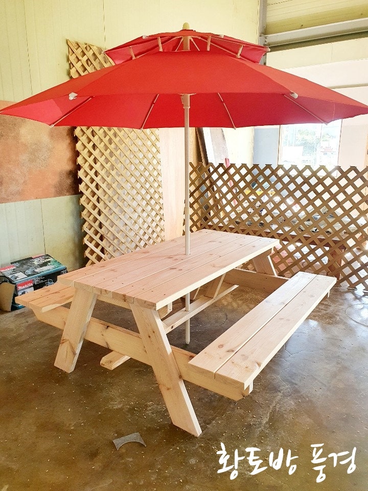 #파라솔테이블 #야외테이블 #원목테이블 #바베큐테이블 #평상