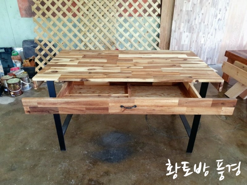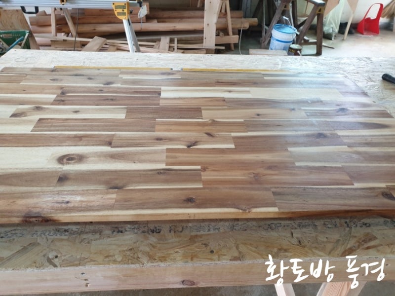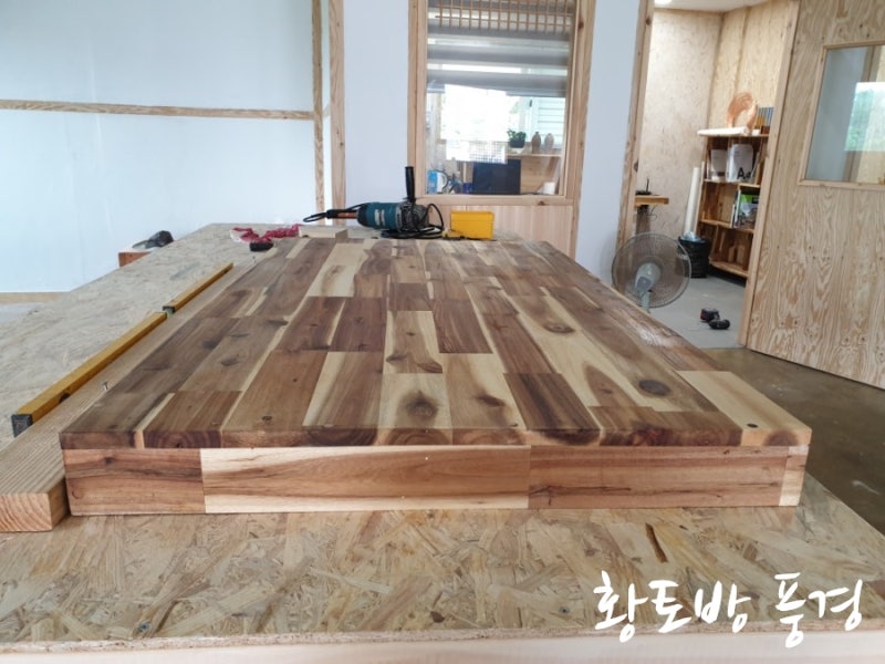 너무 두껍지 않은 아카시아 집성판 18T를 사용했습니다.