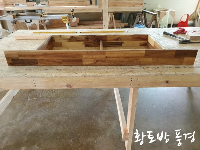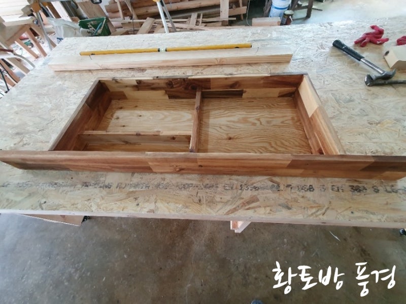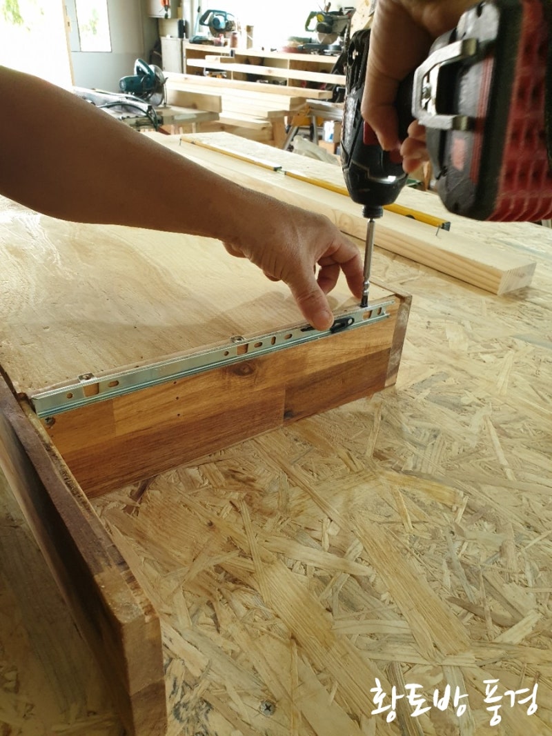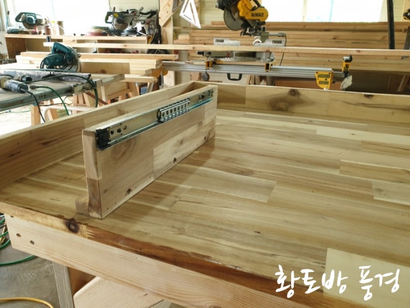책상에 들어갈 서랍입니다. 밑판은 낙엽송 합판을 사용했습니다.