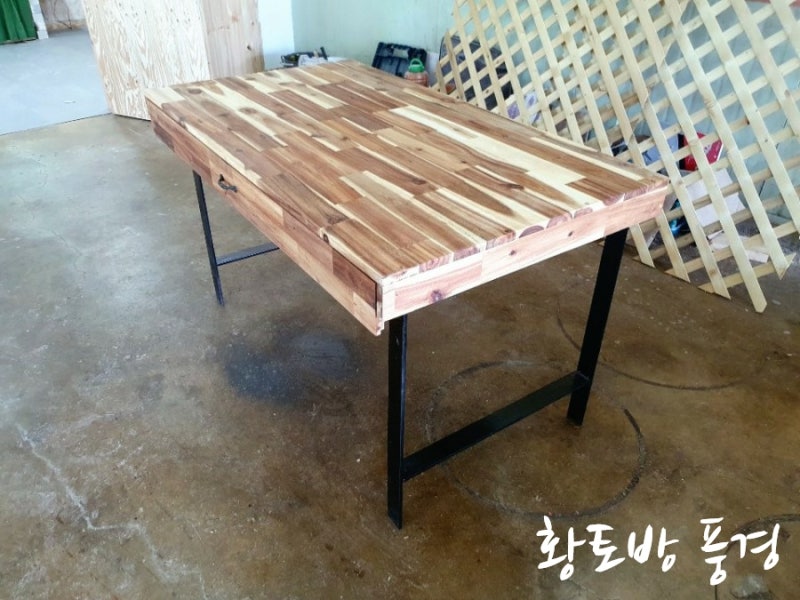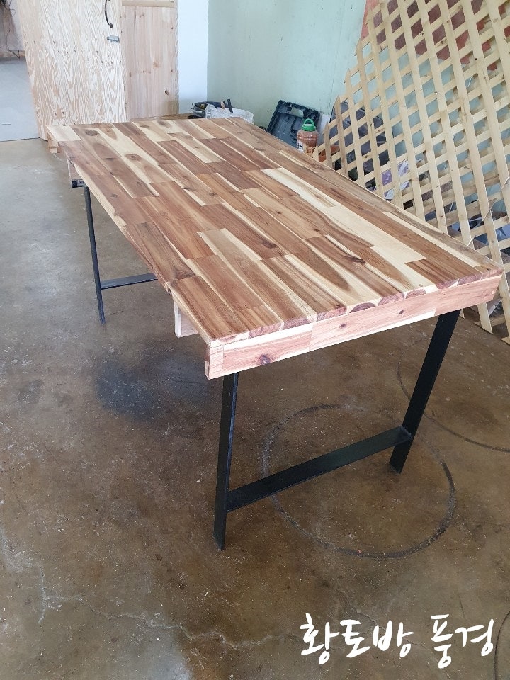 평철을 용접하여 다리를 만들어 상판과 조립했습니다.