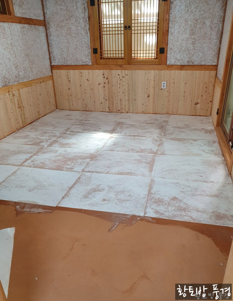 그런 후에 바닥은 천연 고급 옻칠 한지장판을 깔아 줍니다.